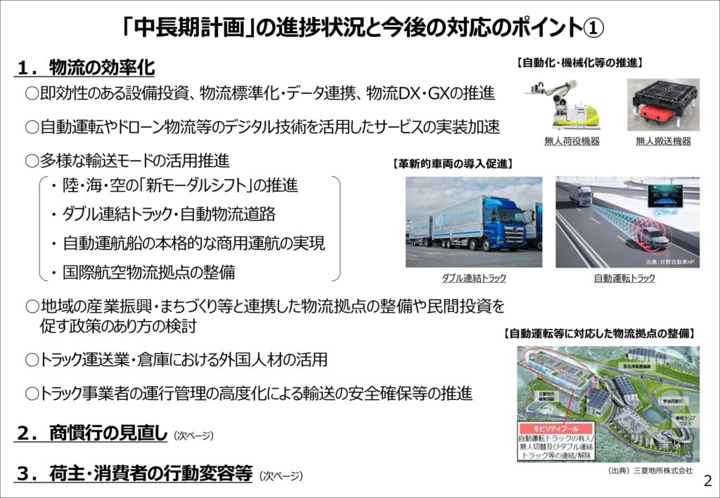 - 輸送力不足が年々深刻化する2030年度までの期間を「集中改革期間」と位置づけ、「中長期計画」の見直しを反映した「総合物流施策大綱」の策定に向けた検討を早急に開始すること