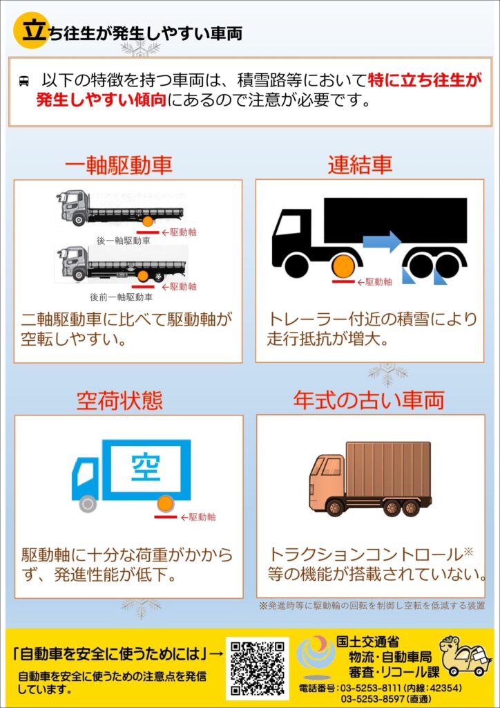 令和2年12月以降の大雪により、関越道、北陸道等において多くの大型車両が立ち往生したことで、大量の車両が路上に滞留する事案が発生したことを踏まえた注意喚起となっています。