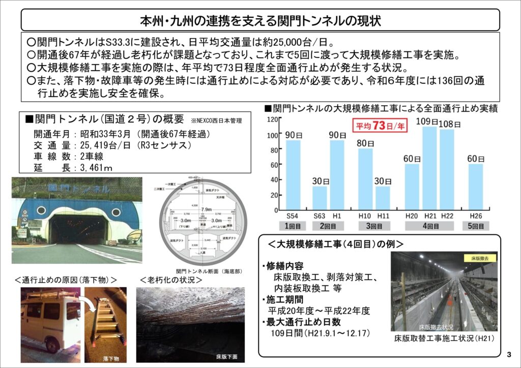 2025年(令和7年)4月に関門トンネルにおける今後の維持管理・修繕に関する検討委員会にて「中間とりまとめ」が発表されました。