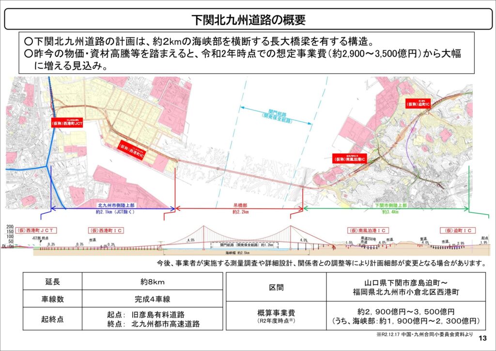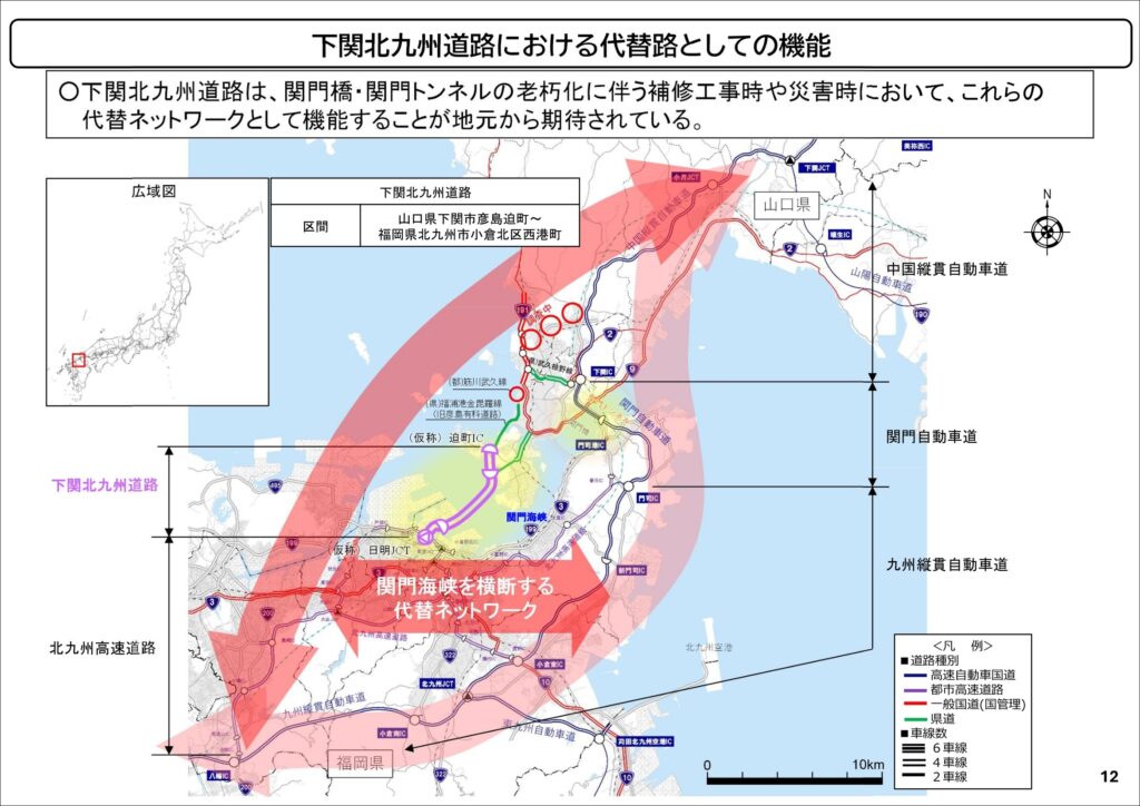 地元からは「下関北九州道路」は、関門橋、関門トンネルの老朽化に伴う補修工事時や災害時において、これらの代替ネットワークとして機能することが期待されています。