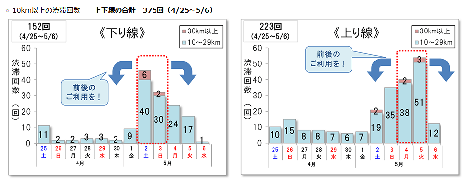 各道路会社から渋滞予測ならびに渋滞回避のお願いが出ております。