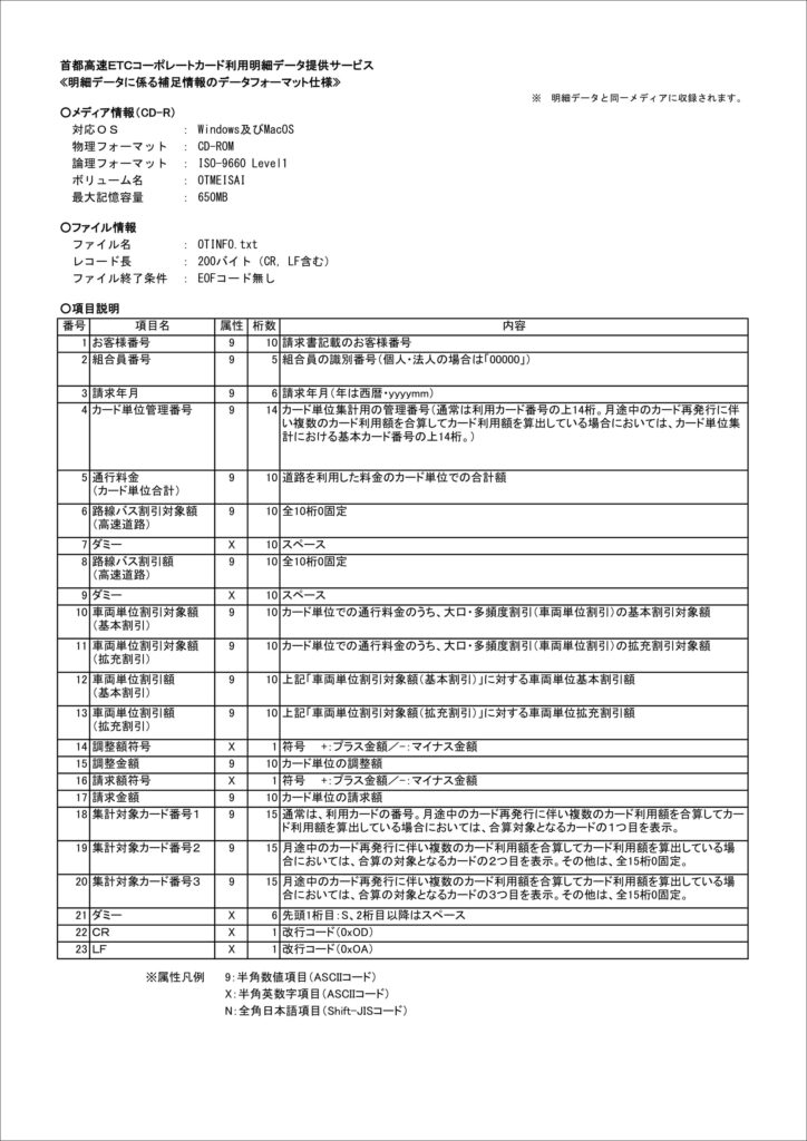 ETCコーポレートカードによる通行の明細データを、電子媒体(CD-R)で提供する「ETCコーポレートカード利用明細データ提供サービス(有料サービス)」の詳細については、以下をご参照下さい。