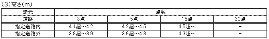 違反をしてしまった場合の加算点数は、3点、5点、15点となります。 前述で紹介しました、高さ指定道路とその他の道路で基準が異なります。